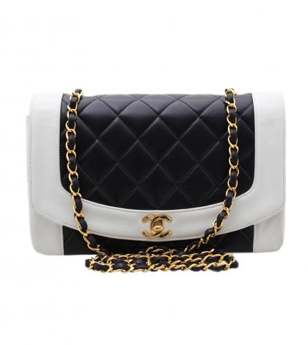VINTAGE PARIS > Brand シャネル バイカラー ダイアナ フラップ バッグ 価格はお問い合わせください。 Contact Customer Service 問い合わせ シャネルは1910年、ガブリエル・ココ・シャネルによって創設された。同年、彼女はパリのカンボン通り21番地に最初のブティック「シャネル・モード」を開店。1918年にはカンボン通り31番地にブティック、工房、サロンを備えたクチュールハウスを開設した。初期のデザインはシンプルなライン、ジャージー生地、革やレースのトリミングが特徴だった。その多くは黒、グレー、ネイビーブルーといった伝統的に男性的な色調で生産されました。1920年代には、初のシャネルショルダーバッグと、現在世界で最も有名な香水とされるシャネルの香水「シャネル No.5」を発表しました。 Great Condition ラムスキン & メタル サイズ : 25 x 15 x 7 cm 同じようなアイテムをお持ちですか?是非当店にお売りください!