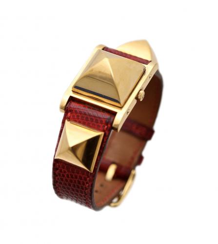VINTAGE PARIS > Brand > Hermes エルメス メドール ウォッチ 85,800円(税込) Contact Customer Service エルメスは1837年、ティエリー・エルメスによってパリで馬車用馬具店として創業されました。 彼は素材、品質、職人技を最優先し、間もなくヨーロッパの貴族やナポレオン3世からの注文を受けるようになりました。 そして1880年、エルメスとその息子たちは製品ラインナップに馬具を加えました。 更に1920年代から30年代にかけて、エルメスはシルクスカーフやハンドバッグなど女性向けアクセサリーを追加し、 製品ラインを拡大しました。 Great Condition リザード & ゴールドプレーテッド サイズ : 20 x 2 cm 同じようなアイテムをお持ちですか?是非当店にお売りください!