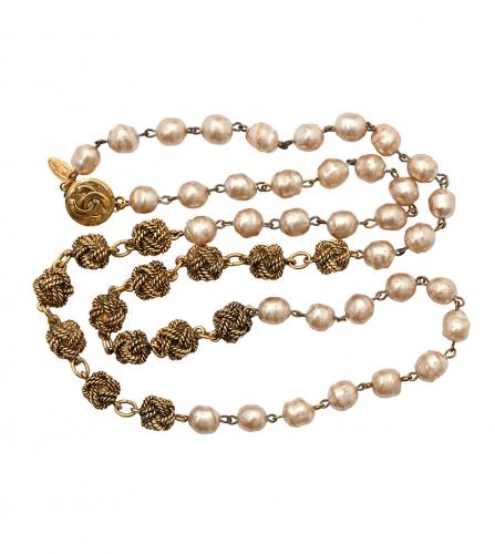 VINTAGE PARIS > Brand > Chanel シャネル ロング ネックレス 価格はお問い合わせください。 Contact Customer Service 問い合わせ シャネルは1910年、ガブリエル・ココ・シャネルによって創設された。同年、彼女はパリのカンボン通り21番地に最初のブティック「シャネル・モード」を開店。1918年にはカンボン通り31番地にブティック、工房、サロンを備えたクチュールハウスを開設した。初期のデザインはシンプルなライン、ジャージー生地、革やレースのトリミングが特徴だった。その多くは黒、グレー、ネイビーブルーといった伝統的に男性的な色調で生産されました。1920年代には、初のシャネルショルダーバッグと、現在世界で最も有名な香水とされるシャネルの香水「シャネル No.5」を発表しました。 Great Condition コスチューム パール & メタル サイズ : 86 cm 同じようなアイテムをお持ちですか?是非当店にお売りください!