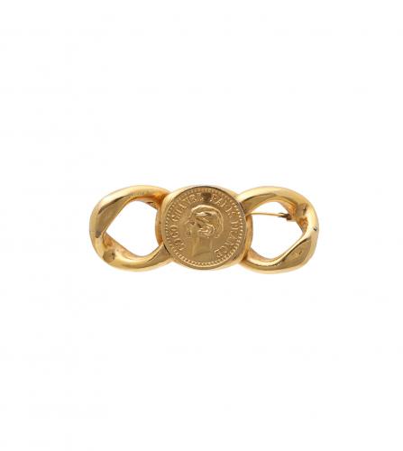 VINTAGE PARIS > Brand > Chanel シャネル ブローチ 価格はお問い合わせください。 Contact Customer Service 問い合わせ シャネルは1910年、ガブリエル・ココ・シャネルによって創設された。同年、彼女はパリのカンボン通り21番地に最初のブティック「シャネル・モード」を開店。1918年にはカンボン通り31番地にブティック、工房、サロンを備えたクチュールハウスを開設した。初期のデザインはシンプルなライン、ジャージー生地、革やレースのトリミングが特徴だった。その多くは黒、グレー、ネイビーブルーといった伝統的に男性的な色調で生産されました。1920年代には、初のシャネルショルダーバッグと、現在世界で最も有名な香水とされるシャネルの香水「シャネル No.5」を発表しました。 Great Condition メタル サイズ : 5.8 x 2.1 cm 同じようなアイテムをお持ちですか?是非当店にお売りください!