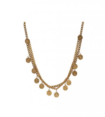 VINTAGE PARIS > Brand > Celine セリーヌ ネックレス 価格はお問い合わせください。 Contact Customer Service 問い合わせ セリーヌは、1945年にセリーヌ・ヴィピアーナによってオーダーメイドの子供靴専門店として設立されたフランスの高級ファッションブランドである。控えめなエレガンスとパリジャン・シックで知られる、レディー・トゥ・ウェアと皮革製品ブランドへと発展した。セリーヌは、現代的なミニマリズムを再定義したフィービー・ファイロや、よりエッジの効いた若者志向の美学を導入したエディ・スリマンといったデザイナーの下で、新たな注目を集めるようになった。 Great Condition ゴールド メタルハードウェア サイズ : 94.5 cm 同じようなアイテムをお持ちですか?是非当店にお売りください!