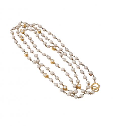 VINTAGE PARIS > Brand シャネル ネックレス 価格はお問い合わせください。 Contact Customer Service 問い合わせ シャネルは1910年、ガブリエル・ココ・シャネルによって創設された。同年、彼女はパリのカンボン通り21番地に最初のブティック「シャネル・モード」を開店。1918年にはカンボン通り31番地にブティック、工房、サロンを備えたクチュールハウスを開設した。初期のデザインはシンプルなライン、ジャージー生地、革やレースのトリミングが特徴だった。その多くは黒、グレー、ネイビーブルーといった伝統的に男性的な色調で生産されました。1920年代には、初のシャネルショルダーバッグと、現在世界で最も有名な香水とされるシャネルの香水「シャネル No.5」を発表しました。 Great Condition コスチューム パール & メタル サイズ : 85 cm 同じようなアイテムをお持ちですか?是非当店にお売りください!
