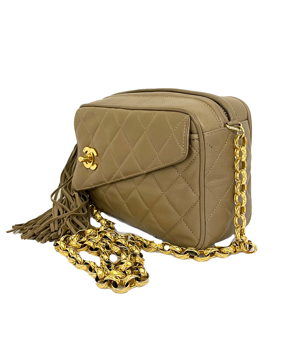 VINTAGE PARIS > Brand > Chanel NEW シャネル タッセル フラップバッグ トープ 価格はお問い合わせください。 Contact Customer Service 問い合わせ シャネルは1910年、ガブリエル・ココ・シャネルによって創設された。同年、彼女はパリのカンボン通り21番地に最初のブティック「シャネル・モード」を開店。1918年にはカンボン通り31番地にブティック、工房、サロンを備えたクチュールハウスを開設した。初期のデザインはシンプルなライン、ジャージー生地、革やレースのトリミングが特徴だった。その多くは黒、グレー、ネイビーブルーといった伝統的に男性的な色調で生産されました。1920年代には、初のシャネルショルダーバッグと、現在世界で最も有名な香水とされるシャネルの香水「シャネル No.5」を発表しました。 Great Condition レザー & ゴールド 金具 サイズ : 18 × 13 × 7 cm 同じようなアイテムをお持ちですか?是非当店にお売りください! 同じようなアイテムをお持ちですか?是非当店にお売りください!