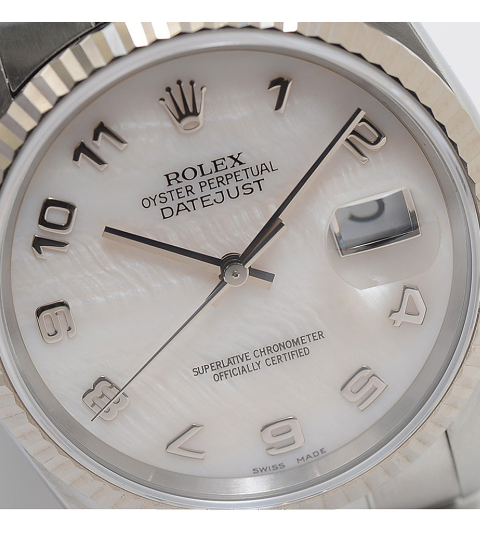 VINTAGE PARIS > Watches > Rolex ロレックス デイトジャスト ウォッチ 900,000円(税込) Contact Customer Service 時計製造における最も重要な出来事のいくつかは、ロレックスに起因します。1926年、ロレックスは初の防水腕時計であるオイスターを発表。このケースは、湿気や埃がムーブメントにダメージを与えないよう、ねじ込み式リューズを備えていました。5年後の1931年、ロレックスはパーペチュアルシリーズに初の自動巻きローターを導入し、安定した巻き上げを実現しました。1945年、デイトジャストは自動日付変更機能を備えた初のクロノメーター腕時計となりました。 Great Condition リファレンス : 16234NA ムーブメント: オートマチック ケース サイズ : 35 mm 素材 : ホワイトゴールド、ステンレス 同じようなアイテムをお持ちですか?是非当店にお売りください!