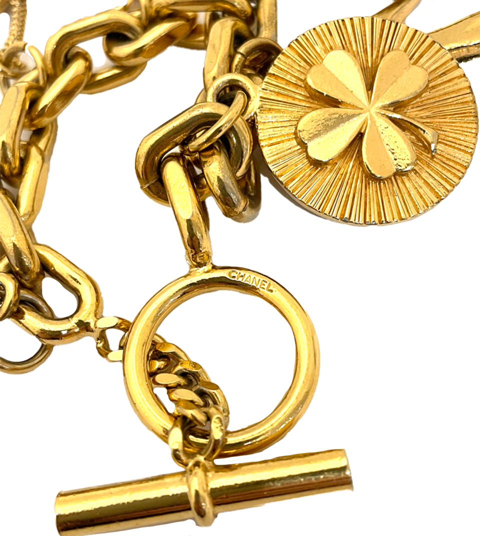 VINTAGE PARIS > Brand > Chanel NEW シャネル チェーン ブレスレット 300,000円(税込) Contact Customer Service シャネルは1910年、ガブリエル・ココ・シャネルによって創設された。同年、彼女はパリのカンボン通り21番地に最初のブティック「シャネル・モード」を開店。1918年にはカンボン通り31番地にブティック、工房、サロンを備えたクチュールハウスを開設した。初期のデザインはシンプルなライン、ジャージー生地、革やレースのトリミングが特徴だった。その多くは黒、グレー、ネイビーブルーといった伝統的に男性的な色調で生産されました。1920年代には、初のシャネルショルダーバッグと、現在世界で最も有名な香水とされるシャネルの香水「シャネル No.5」を発表しました。 Great Condition メタル サイズ : 21 cm 同じようなアイテムをお持ちですか?是非当店にお売りください!