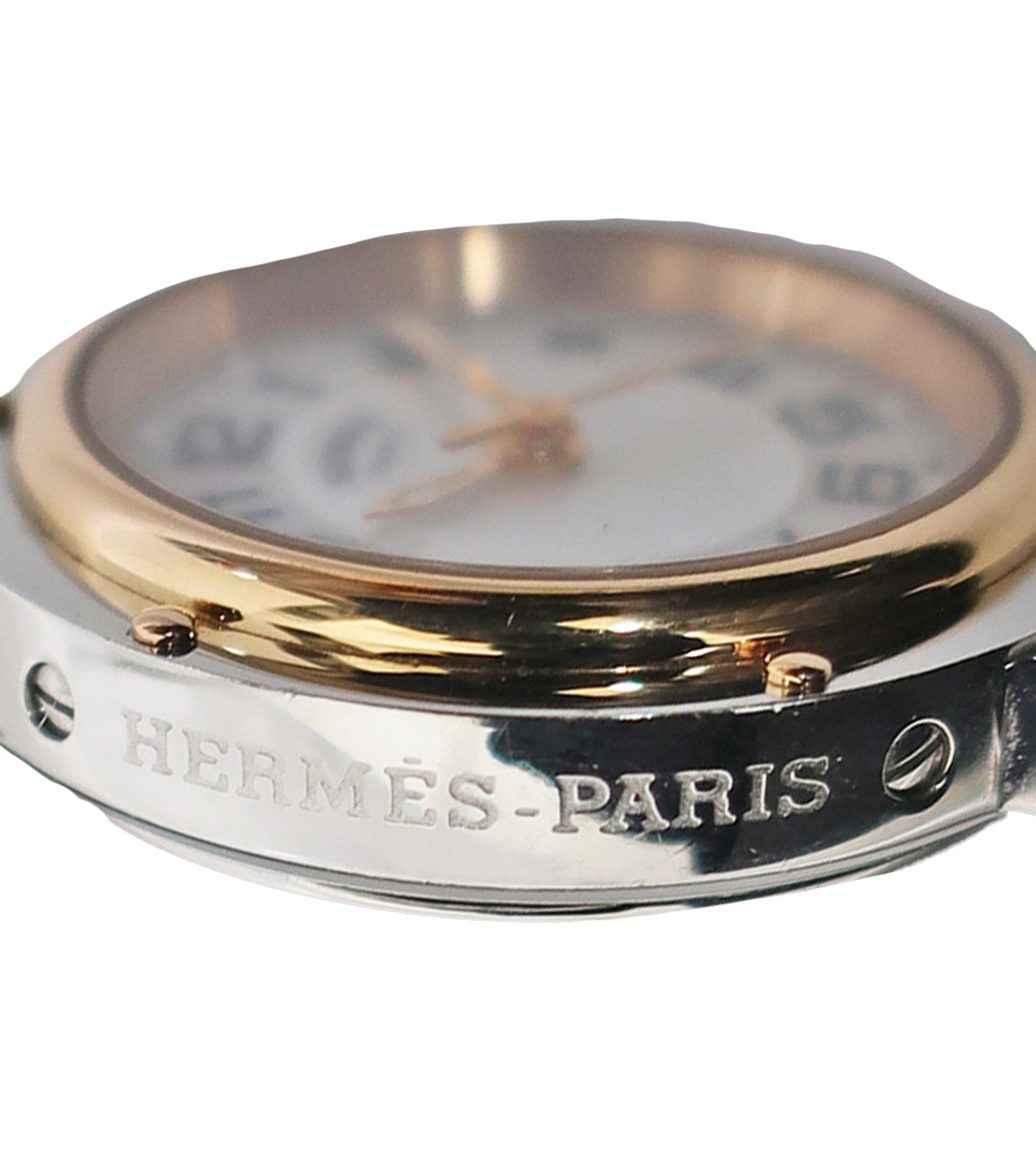 VINTAGE PARIS > Brand > Hermes エルメス クリッパー ナクレ ウォッチ 価格はお問い合わせください。 Contact Customer Service 問い合わせ エルメスは1837年、ティエリー・エルメスによってパリで馬車用馬具店として創業されました。彼は素材、品質、職人技を最優先し、間もなくヨーロッパの貴族やナポレオン3世からの注文を受けるようになりました。そして1880年、エルメスとその息子たちは製品ラインナップに馬具を加えました。 更に1920年代から30年代にかけて、エルメスはシルクスカーフやハンドバッグなど女性向けアクセサリーを追加し、製品ラインを拡大しました。 Great Condition リファレンス : CP1.221 ムーブメント: クォーツ ケース サイズ : 24 mm 素材 : ステンレス、ピンクゴールド 同じようなアイテムをお持ちですか?是非当店にお売りください!