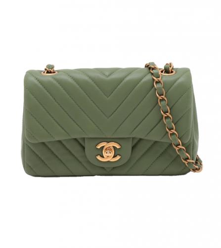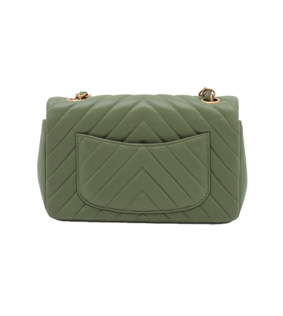 シャネル シェブロン ラムスキン シングル フラップ バッグ グリーン